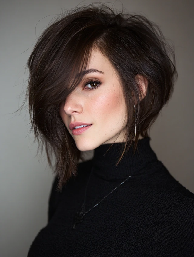 3. Angled Bob with Side-Swept Bangs