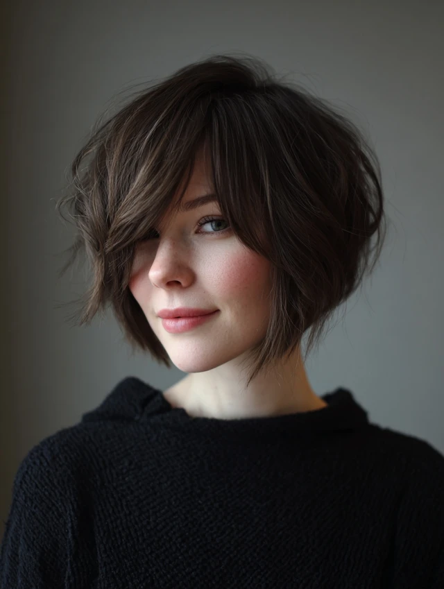 2. Textured Bob with Wispy Bangs