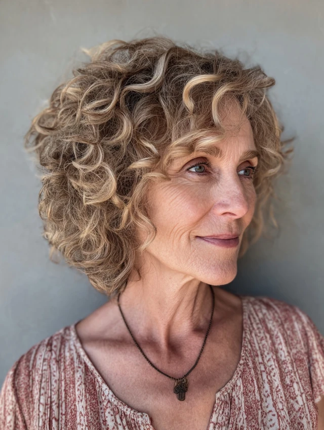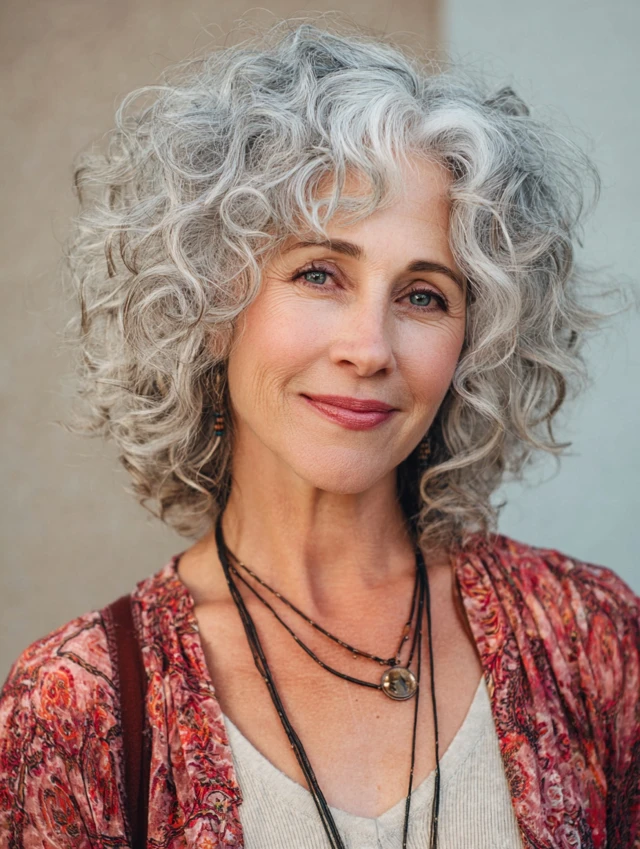 Hairstyles for women over 50 with curly hair celebrate natural texture while adding style, volume, and sophistication. Curly hair naturally provides movement and body, making it perfect for creating youthful and lively hairstyles.