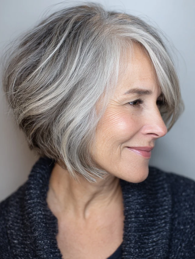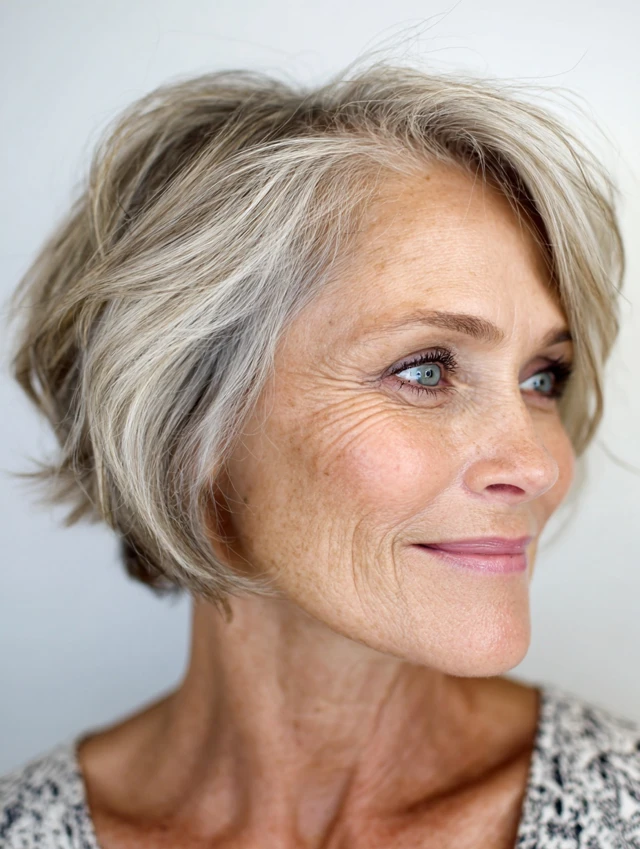 A flattering, age-appropriate hairstyle that enhances volume, texture, and confidence.