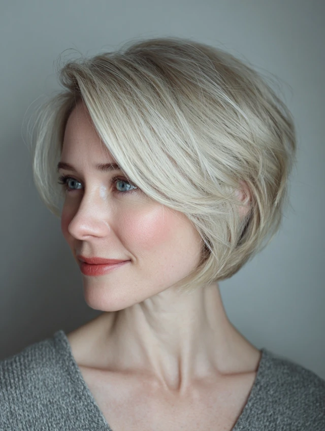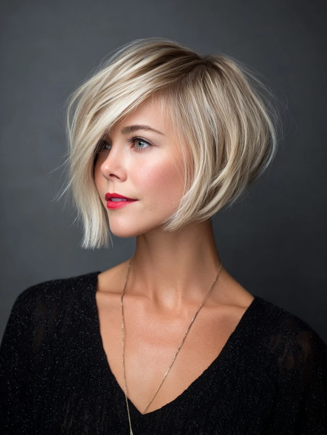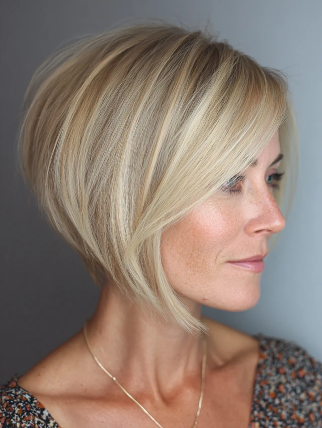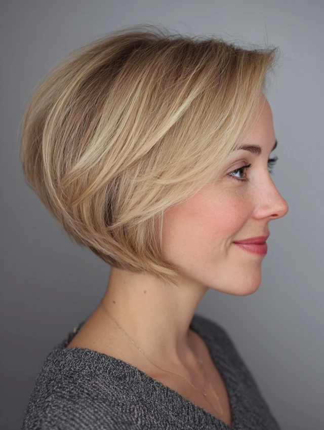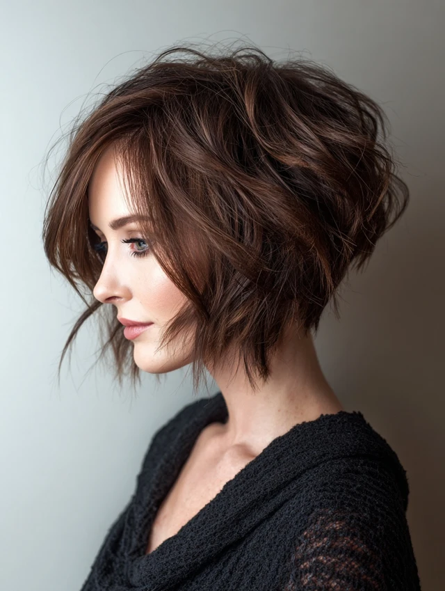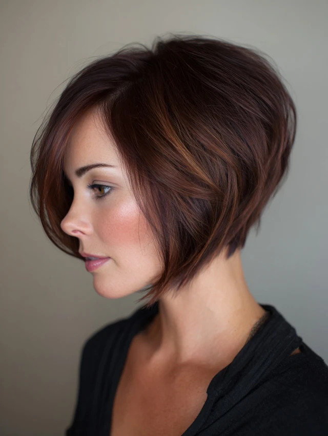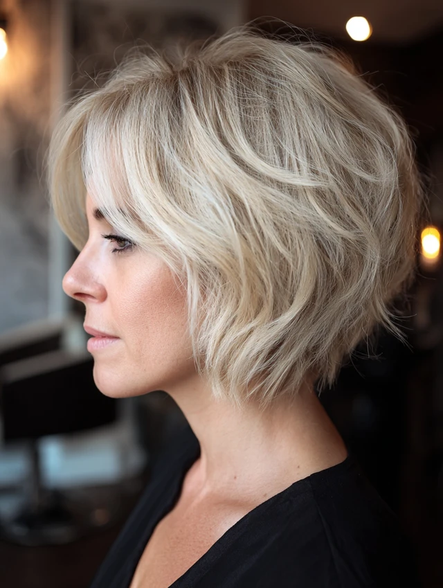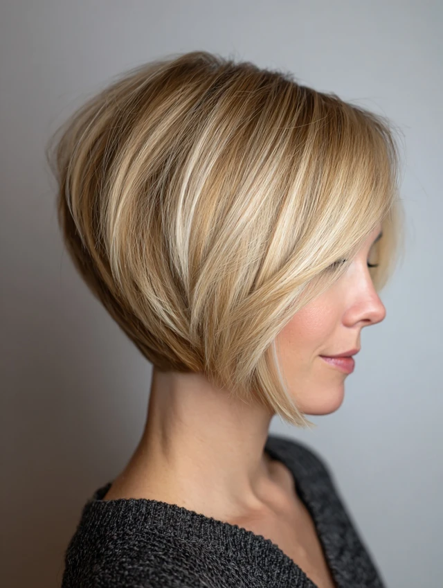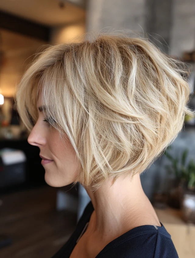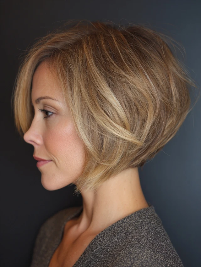 Whether you choose a classic stacked bob, textured style, or angled version, this haircut can make fine hair appear thicker and more dynamic.